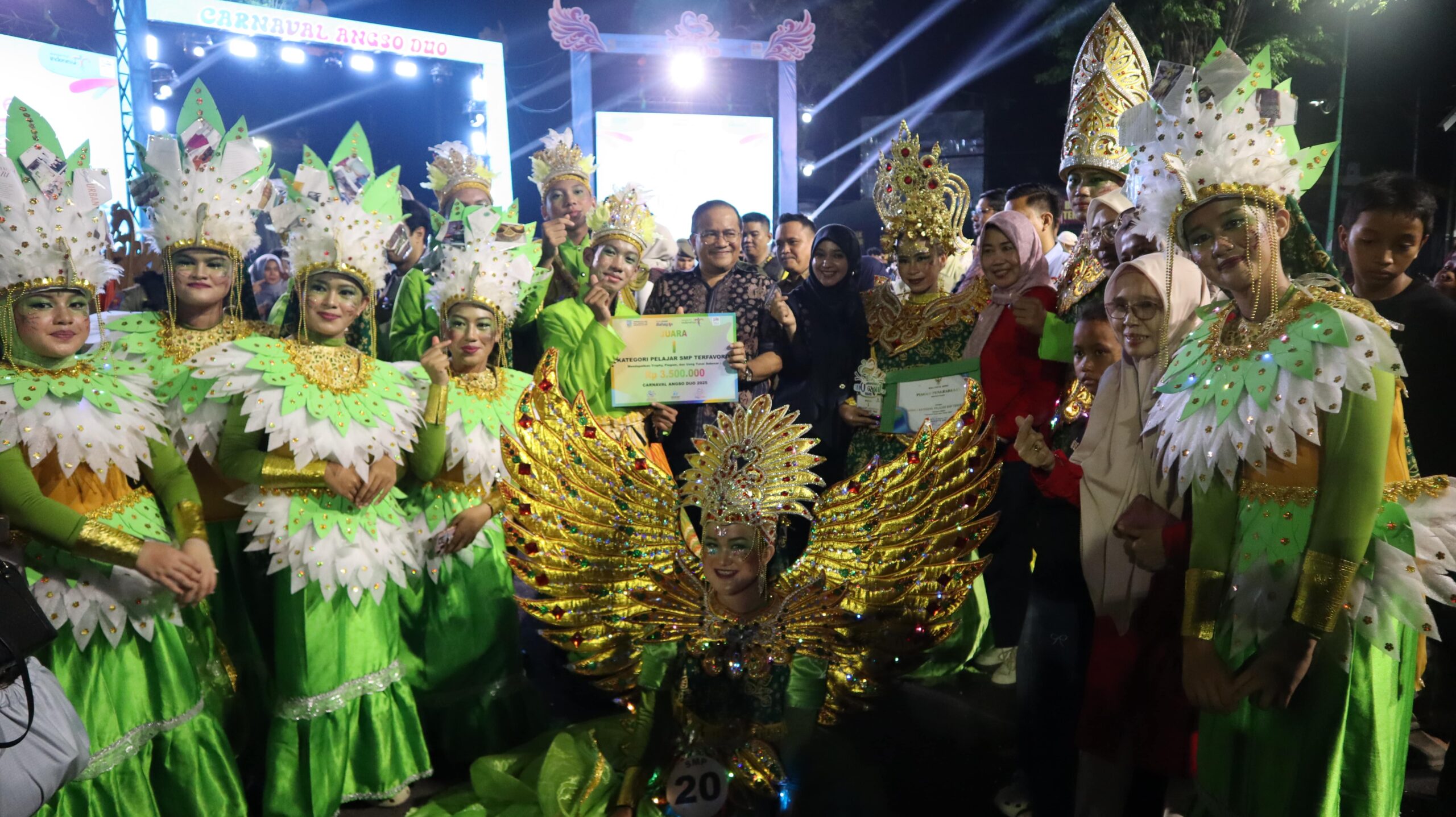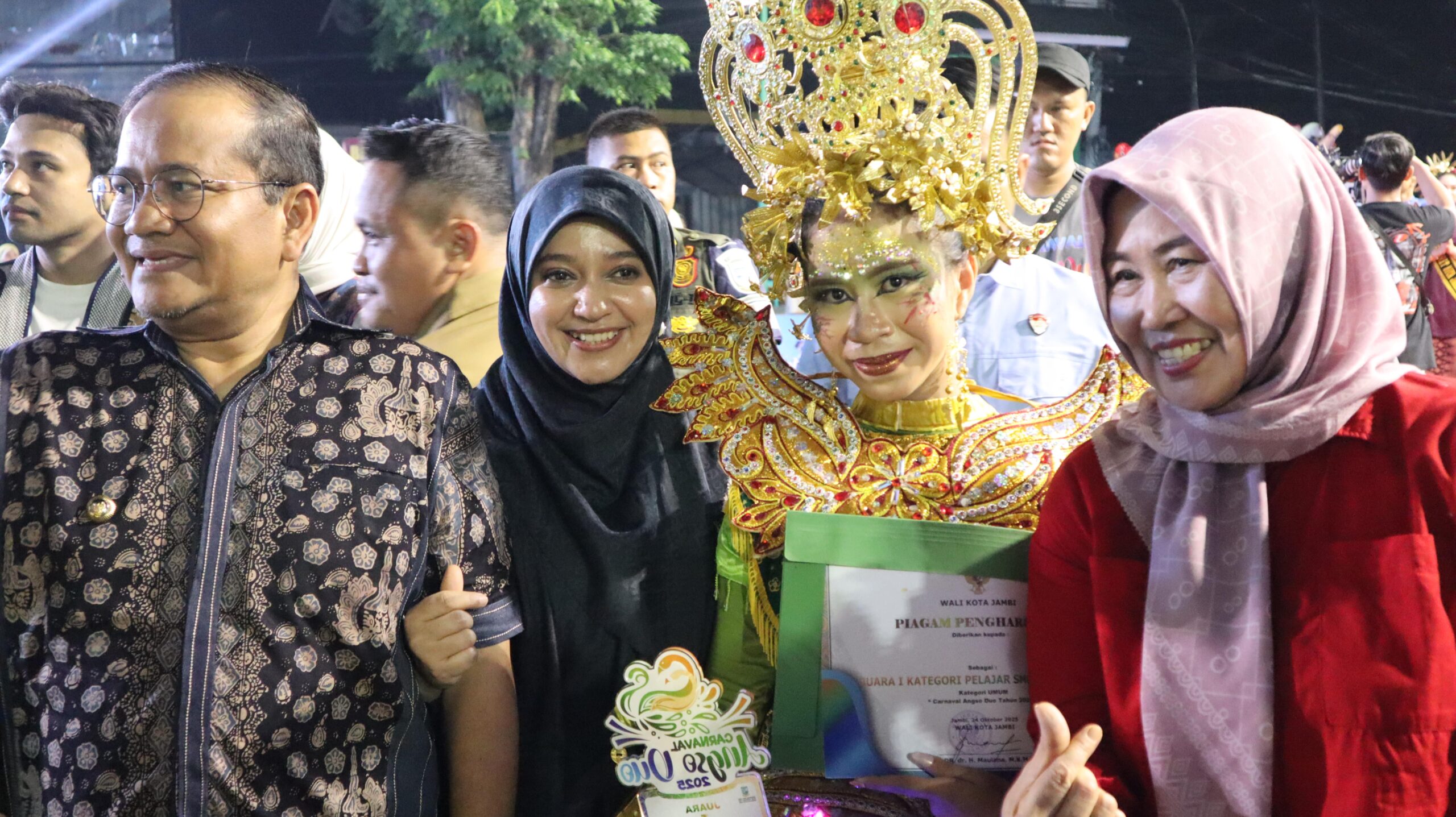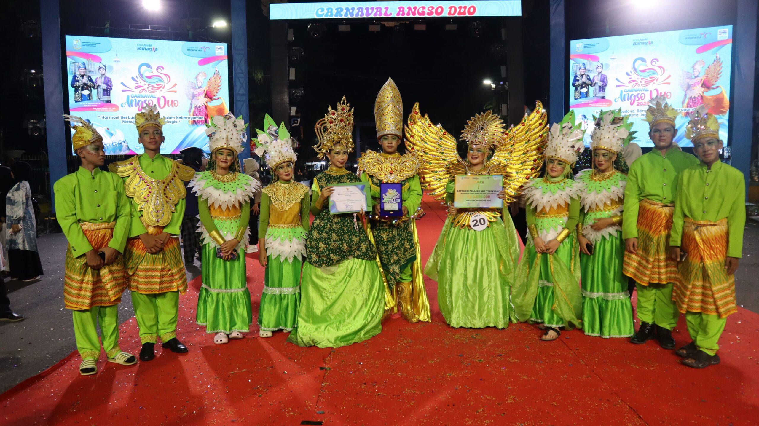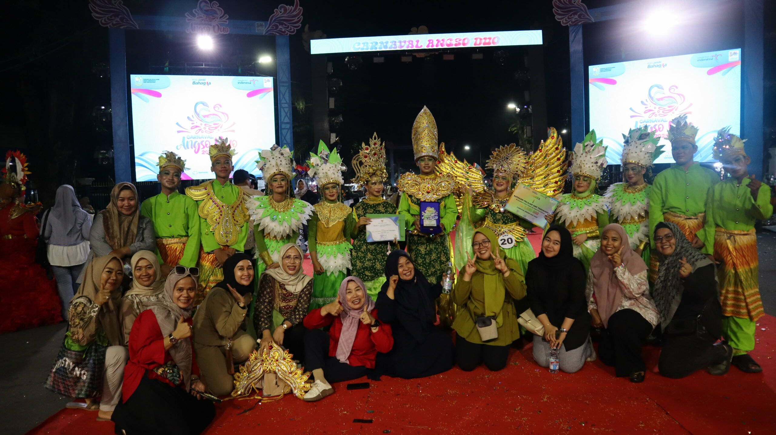 Jambi, 24 Oktober 2025 β Prestasi membanggakan kembali ditorehkan oleh SMP Negeri 001 Jambi pada ajang bergengsi Carnaval Angso Duo 2025. Sekolah ini berhasil mempertahankan gelar sebagai Juara 1 Favorit untuk keempat kalinya secara berturut-turut, menegaskan eksistensi dan kreativitas sekolah dalam menampilkan karya seni budaya yang memukau.