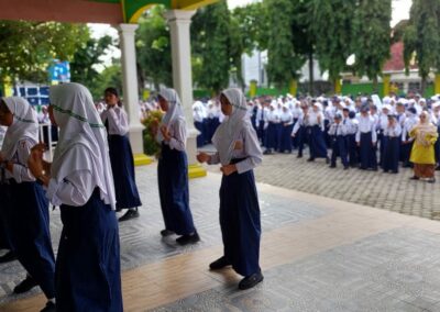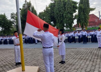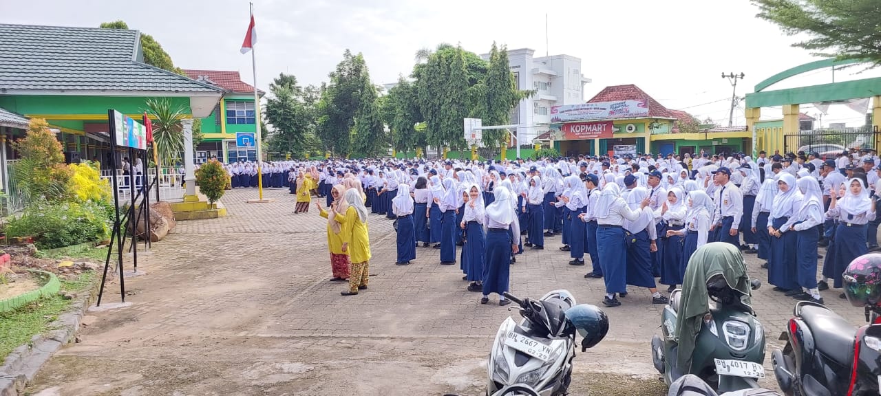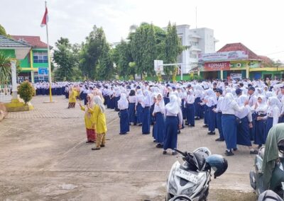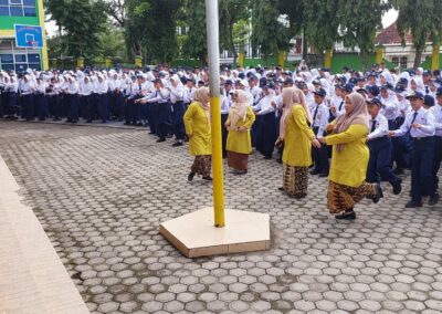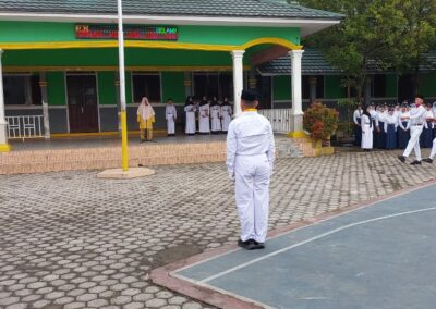 Kegiatan diawali dengan upacara bendera di lapangan sekolah yang dipimpin oleh Pembina Upacara, Ibu Mardunah, M.Pd. Dalam amanatnya, beliau memberikan motivasi dan penegasan penting kepada seluruh peserta didik.