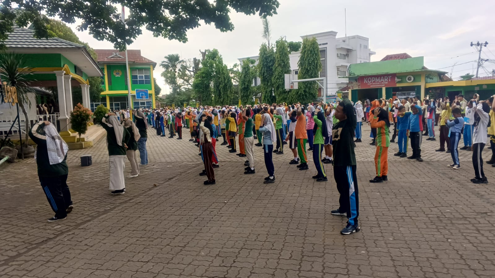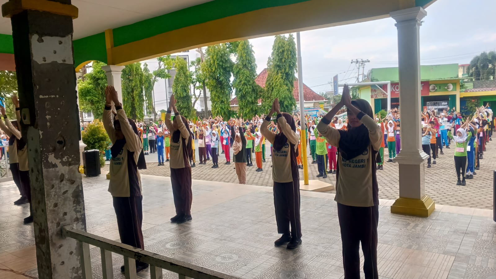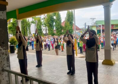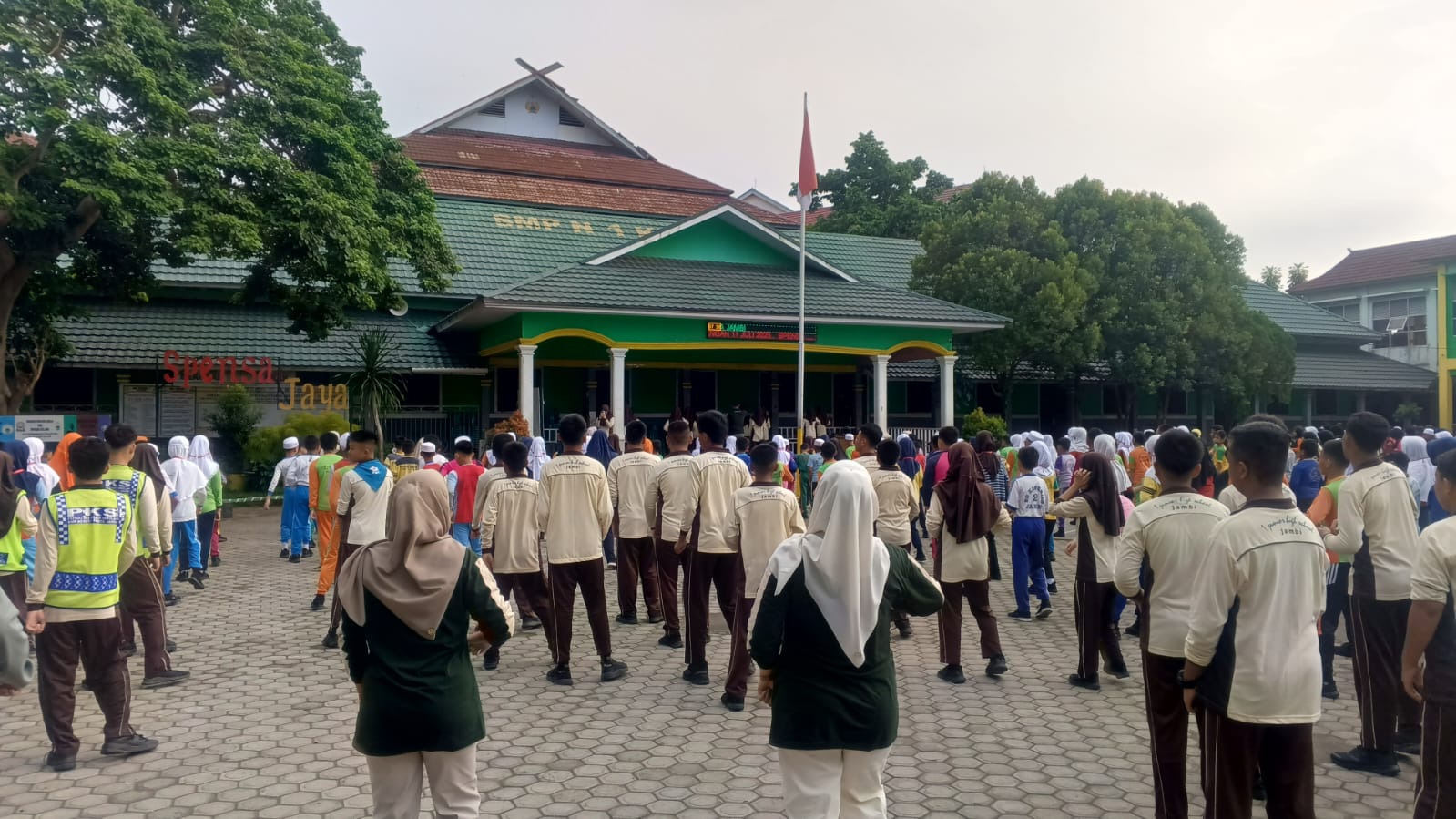 Jambi, 11 Juli 2025 – Kegiatan Masa Pengenalan Lingkungan Sekolah (MPLS) hari ketiga di SMP Negeri 1 Kota Jambi berlangsung meriah dan penuh semangat. Mengusung konsep “MPLS yang Ramah dan Bahagia” kegiatan diawali dengan senam pagi bersama yang bertujuan untuk menjaga kebugaran dan menumbuhkan semangat kebersamaan di antara para siswa baru.