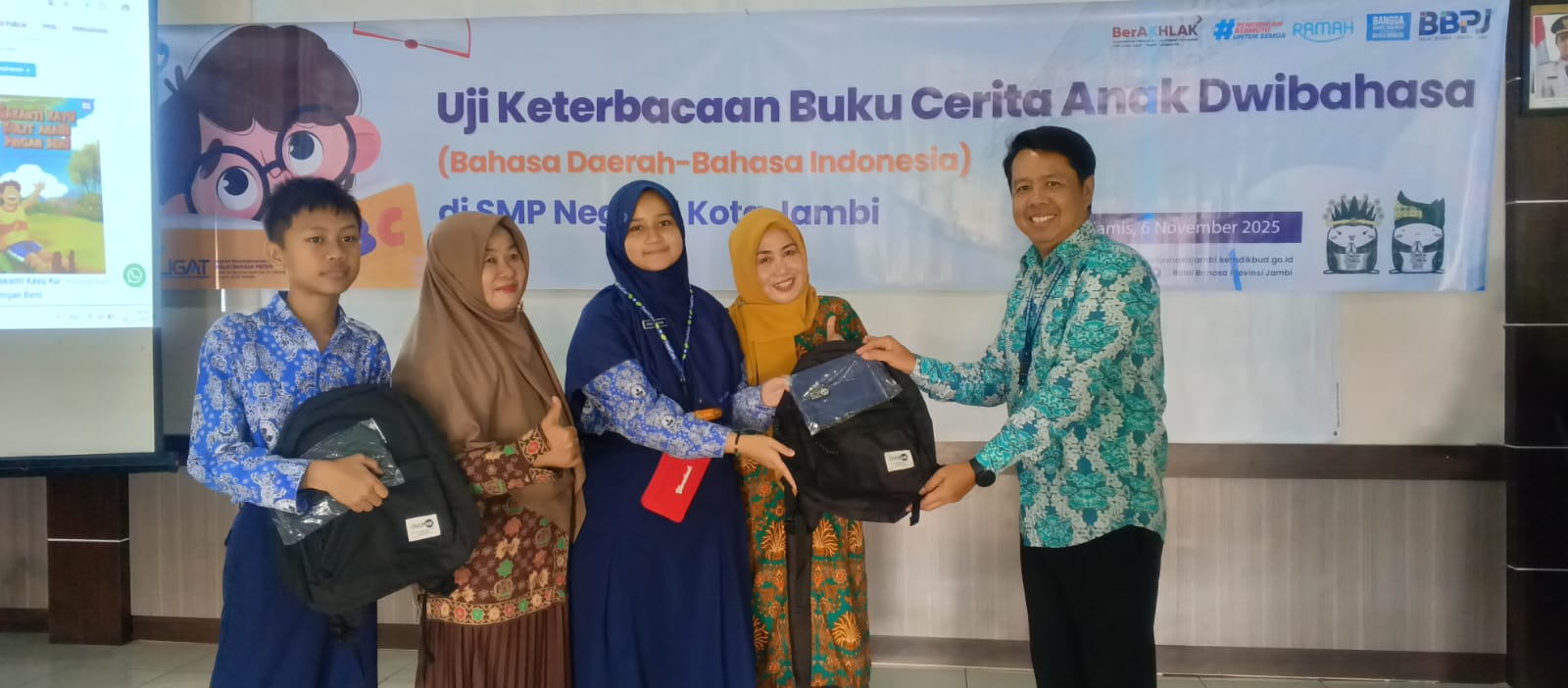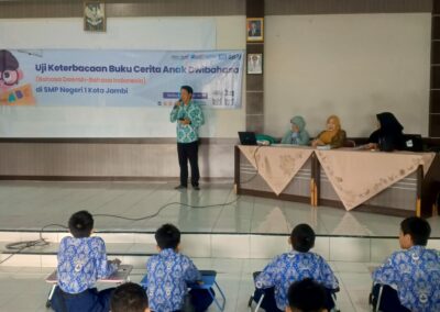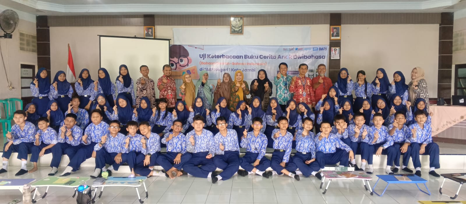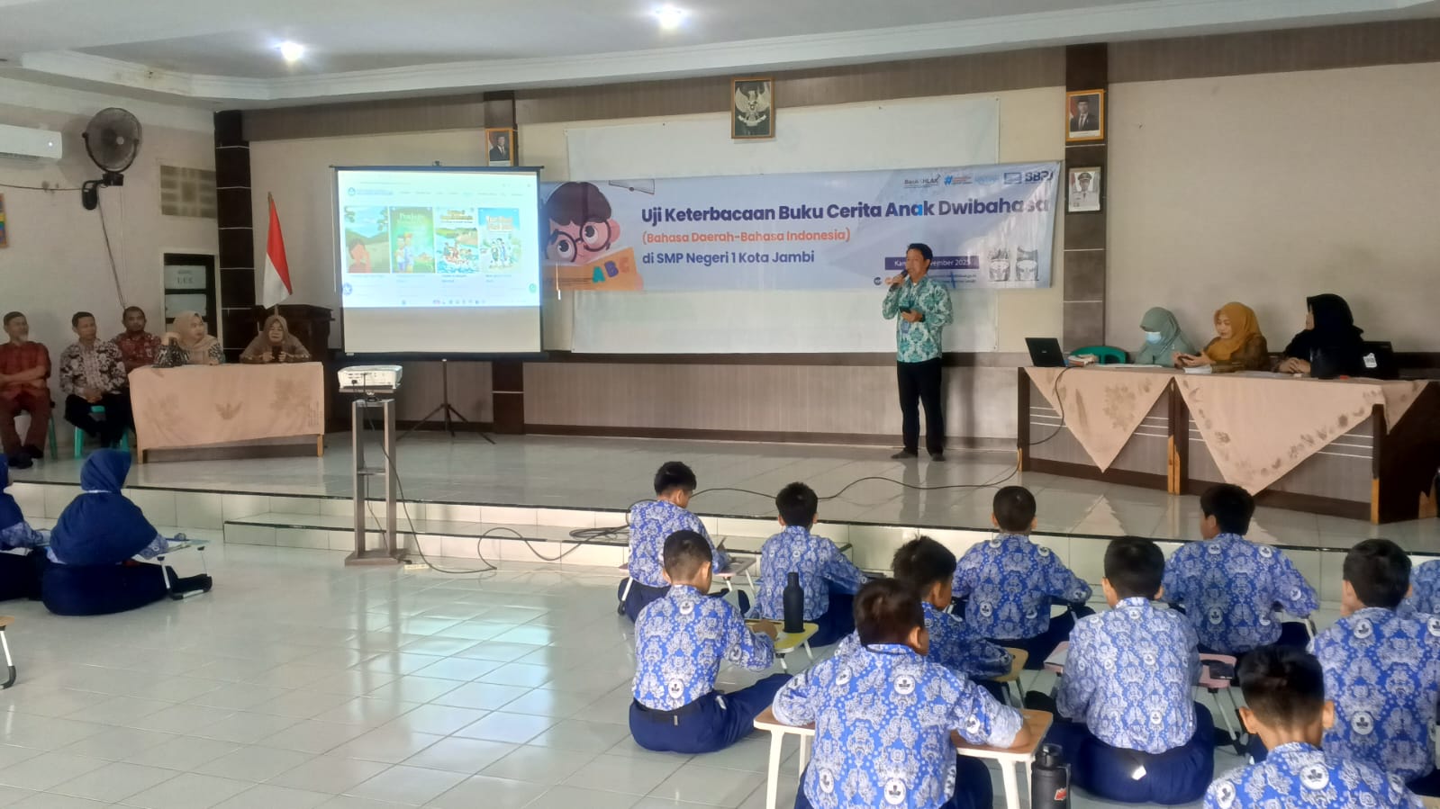 Sebanyak 50 peserta didik SMP Negeri 1 Kota Jambi terlibat aktif dalam uji keterbacaan 34 judul buku cerita anak dwibahasa. Melalui kegiatan ini, siswa diajak untuk memberikan penilaian terhadap buku yang telah mereka baca. Penilaian tersebut akan menjadi masukan bagi Balai Bahasa Provinsi Jambi untuk memperbaiki buku cerita anak sebelum dicetak.