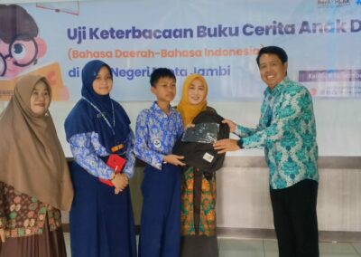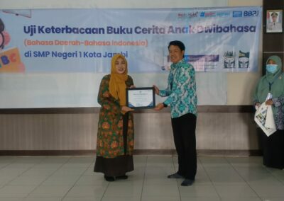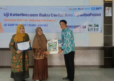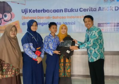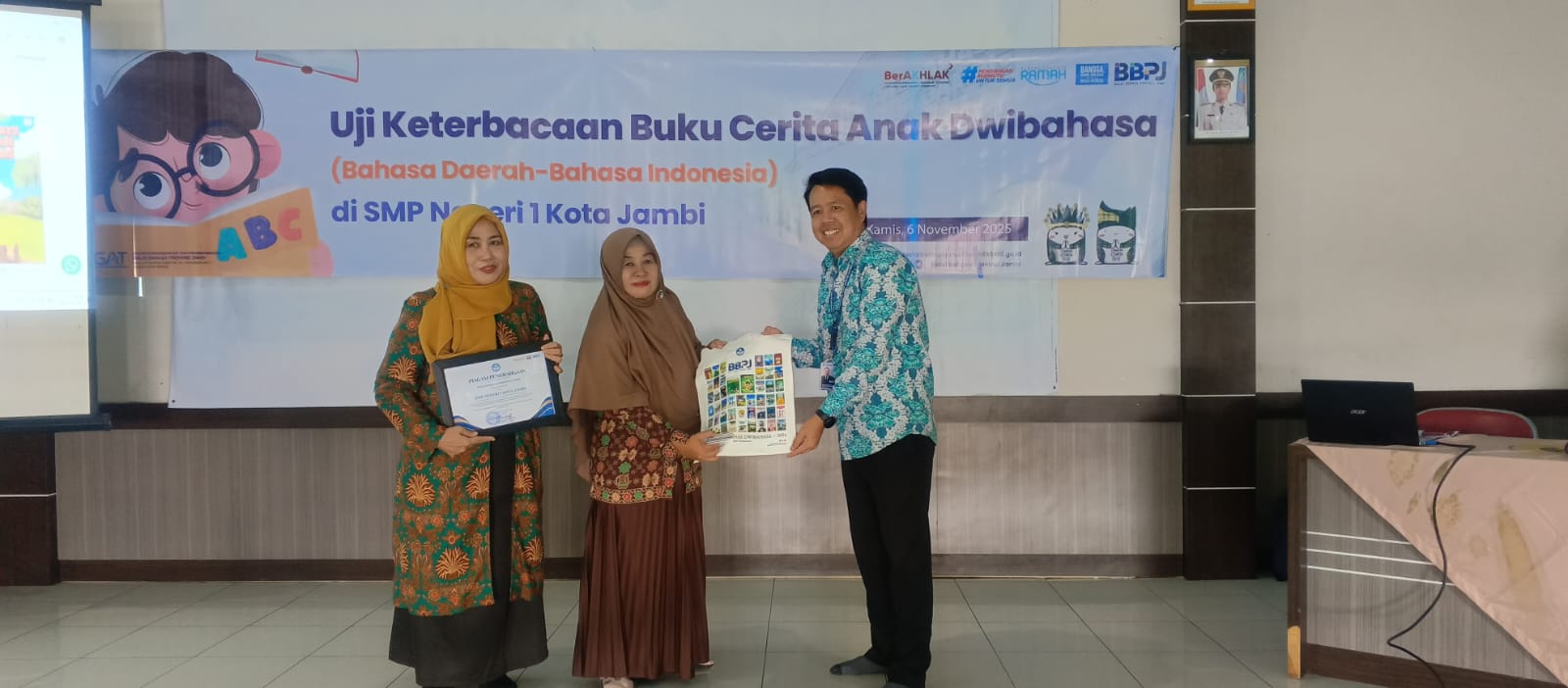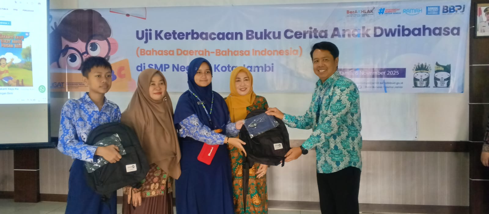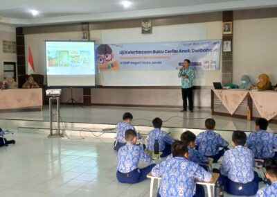 Sebanyak 50 peserta didik SMP Negeri 1 Kota Jambi terlibat aktif dalam uji keterbacaan 34 judul buku cerita anak dwibahasa. Melalui kegiatan ini, siswa diajak untuk memberikan penilaian terhadap buku yang telah mereka baca. Penilaian tersebut akan menjadi masukan bagi Balai Bahasa Provinsi Jambi untuk memperbaiki buku cerita anak sebelum dicetak.
